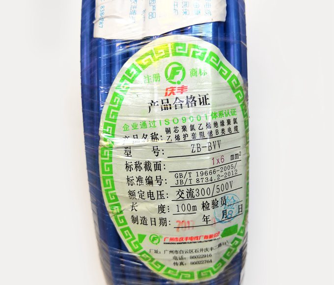 廣州慶豐電纜ZB-BVV阻燃B級家裝電線